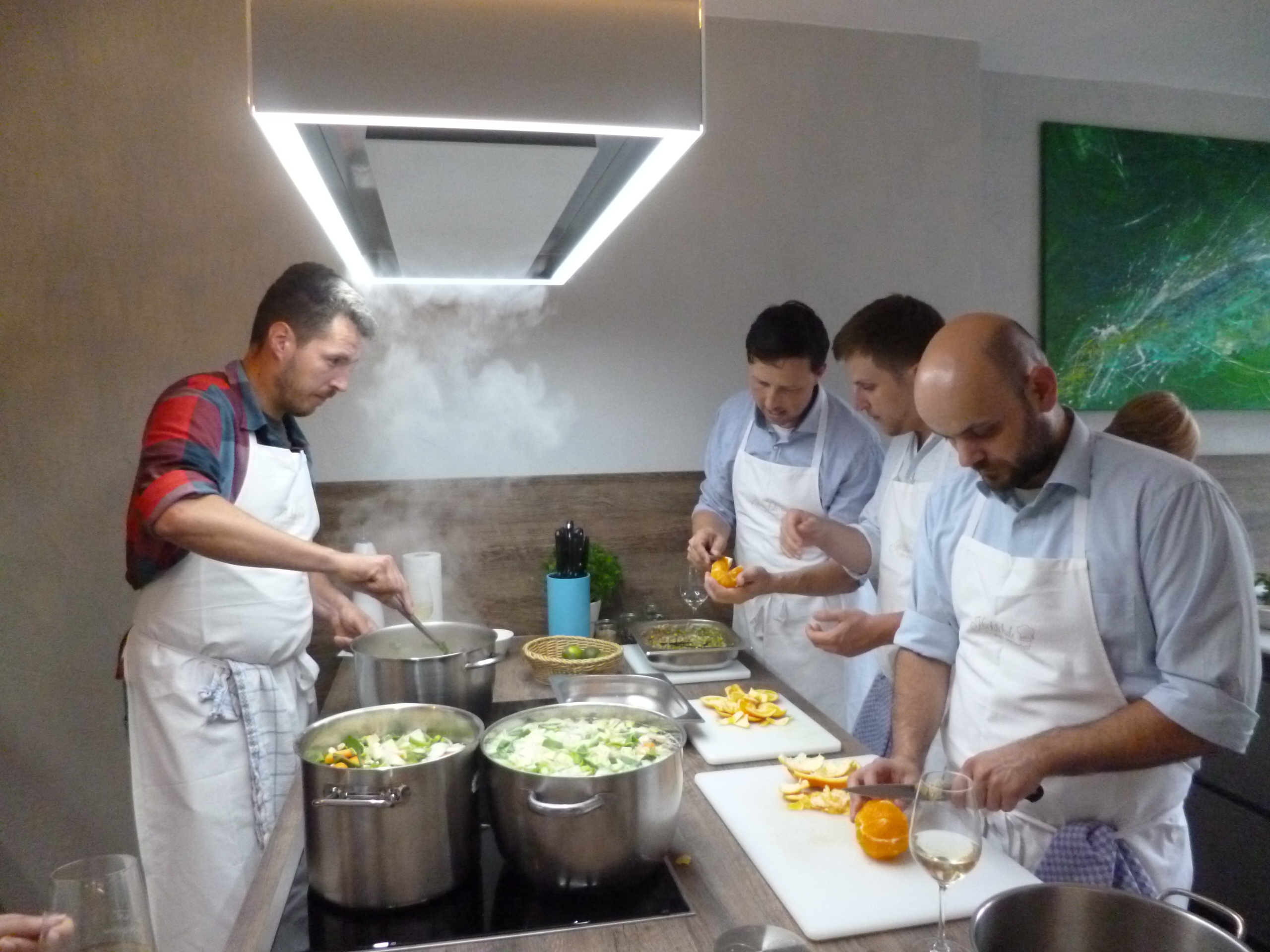 Kochen in der Gruppe ist immer etwas Besonderes: Gute Gespräche, ein gutes Glas Wein und das gemeinsame Zubereiten von Speisen verbindet. Verbringen Sie einen wunderschönen Abend bei uns. Wir freuen uns auf Sie.