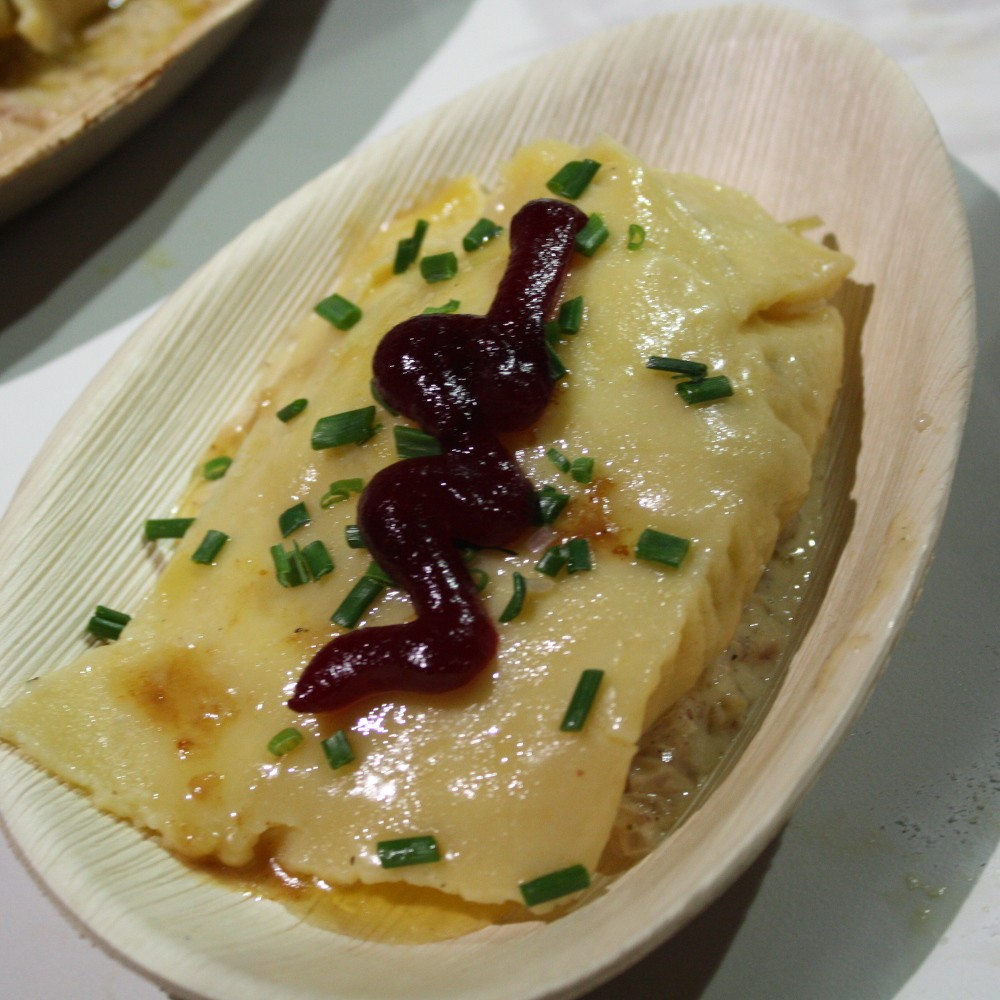 Zweifelsohne, mit selbstgemachten Maultaschen können Feinschmecker Eindruck schinden – doch gewusst wie. Kevin von Holt von der Tafelkünstler Kochschule Kev´s Kitchen verrät in seinem Rezept, wie die Maultaschen garantiert gelingen. Gefüllt werden diese mit Kabeljau. Dazu wird eine Schalottencreme und ein Rote Bete Gel gereicht.
